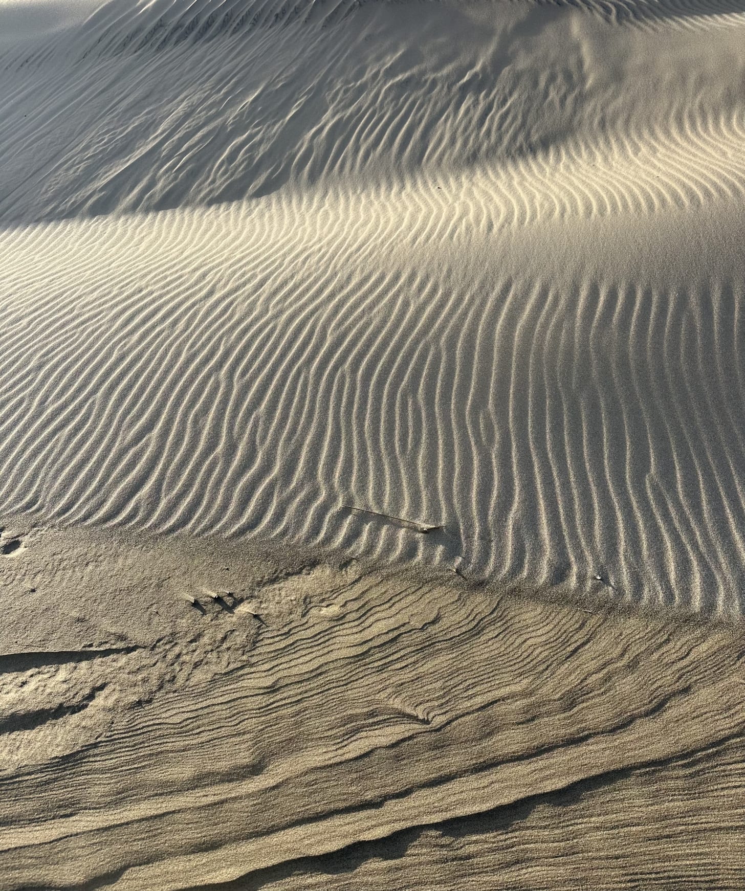 In marveling at the patterns in the sand as I undo my own, my power reverberates again that of the ocean.