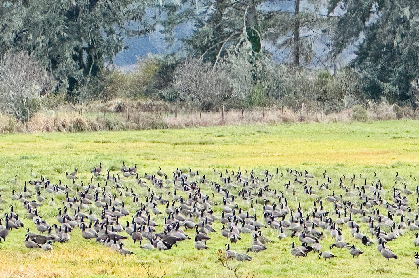 The other day, driving south on the 101 toward Depoe Bay, Oregon, I quickly pulled off onto the shoulder to observe scores and scores of geese landing in chorus in a meadow at sunset, squawking and talking. I have much to still learn about ecology, birds, and the like, and I sat wondering if this was their nightly spot, and what was being discussed.