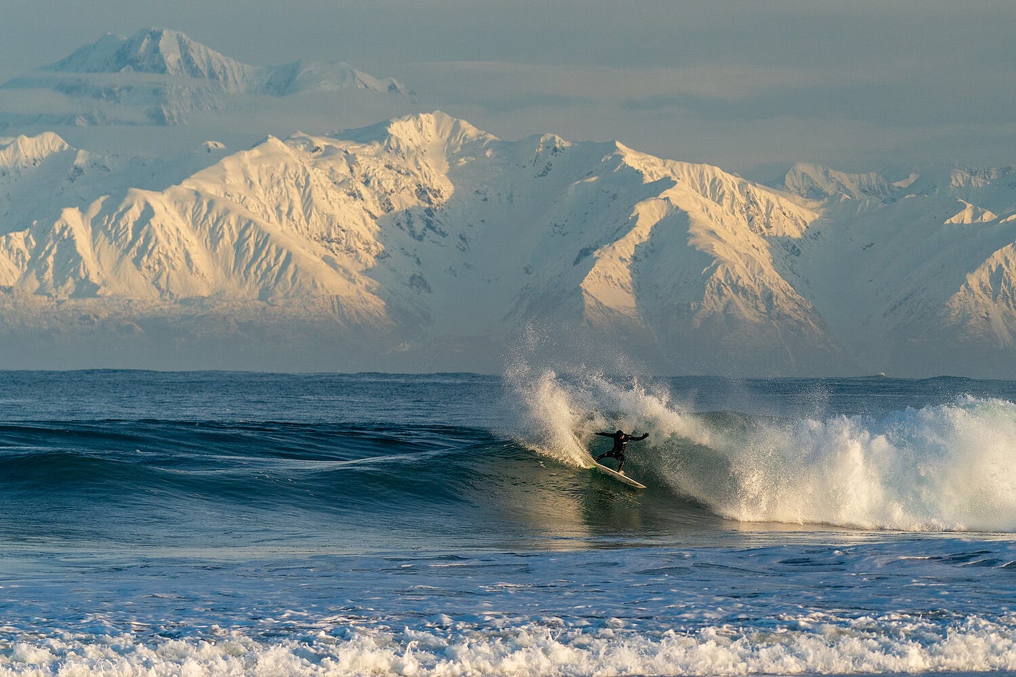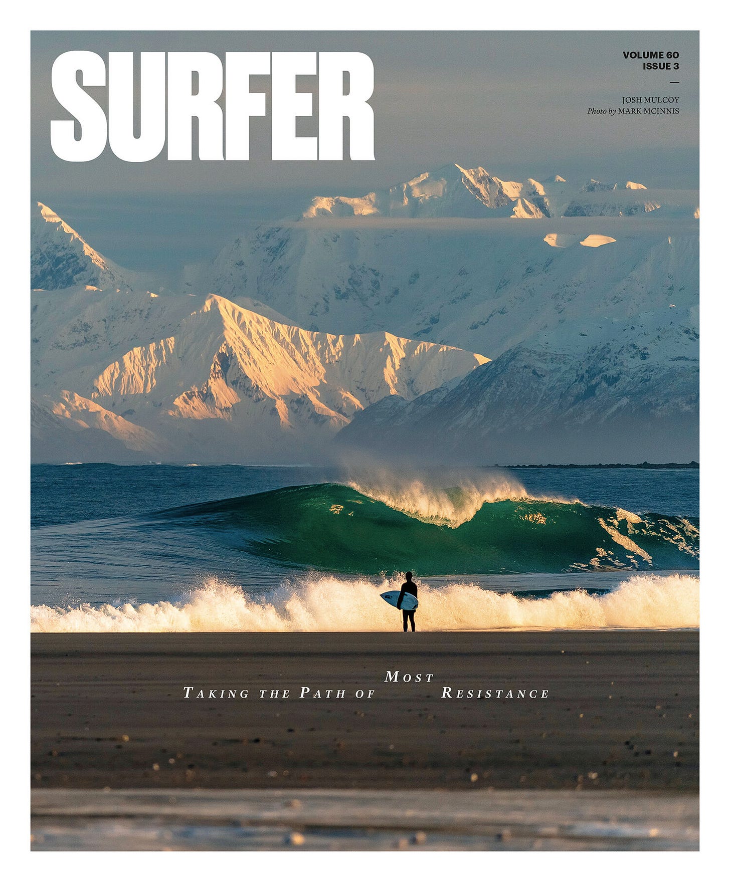 From 2016 to 2018 I was working with another group of friends on a project up in Alaska at this wave that my buddy has been going to for 30 years. He got the cover of Surfer magazine at this wave back in 1998, I think it was. And he'd been going back every year since to try and get it. But it's a very fickle place. It doesn't always break. And then during those years, it was just very, very good again. So we went up there and scored a few times and documented the whole thing. And I ended up getting the cover of Surfer for it in 2019. There are these crazy mountains in the background. It was a crystal-clear day, and the waves were absolutely pumping. It’s just you and your buddies on the beach. There's nobody there. It was one of those moments where you're like, How did this all come together? And then getting the cover of Surfer was a dream come true, to get in there a year before they went defunct.