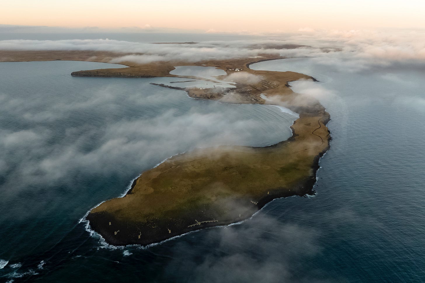 After Island X came out, it won all these awards, and we did all these film tours. But the original wave photo that we saw that took us up there—I think it's one of the best waves in the world on its day—we’ve never seen it break. So the impetus to go back was that it still felt a bit unfinished, we haven’t been able to showcase what’s really there. So we got grants from the state of Alaska, and the community of St. Paul helped us get those grants. We were able to bring the whole crew back together and go up there. We still didn't get that wave. But then we went over to St. George, the other populated island, and that was a whole other experience on a completely different level. It's a dying community. It's in one of the most beautiful places I've ever seen in my life, but it’s a struggle for those people to live there, it’s a miracle that anyone still does. A lot of the homes are already deserted. The fishing industry has been decimated, and it’s become harder to fish close to home, they have to keep going farther and farther out to sea to fish for crab or halibut.